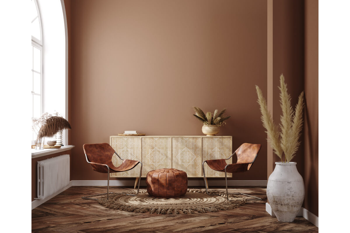 ● durabilitatea – nuanțele maro, ajutate de utilizarea materialelor organice (cum ar fi lemnul, fibrele naturale etc.), sporesc durabilitatea întregului decor;