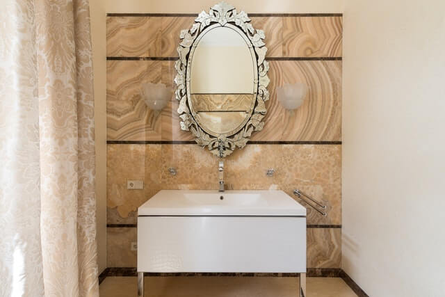 Dacă ai o baie de dimensiuni mai mici, poți introduce doar câteva elemente decorative ale stilului baroc. Este recomandat să alegi o piesă de mobilier tipică și să completezi aspectul cu lămpi de sticlă și oglinzi bogat decorate. O altă idee pe care o poți aplica cu succes este să folosești o vopsea decorativă oxidanta cu ajutorul căreia să transformi atât pereții, cât și piesele de mobilier în obiecte de artă unice.